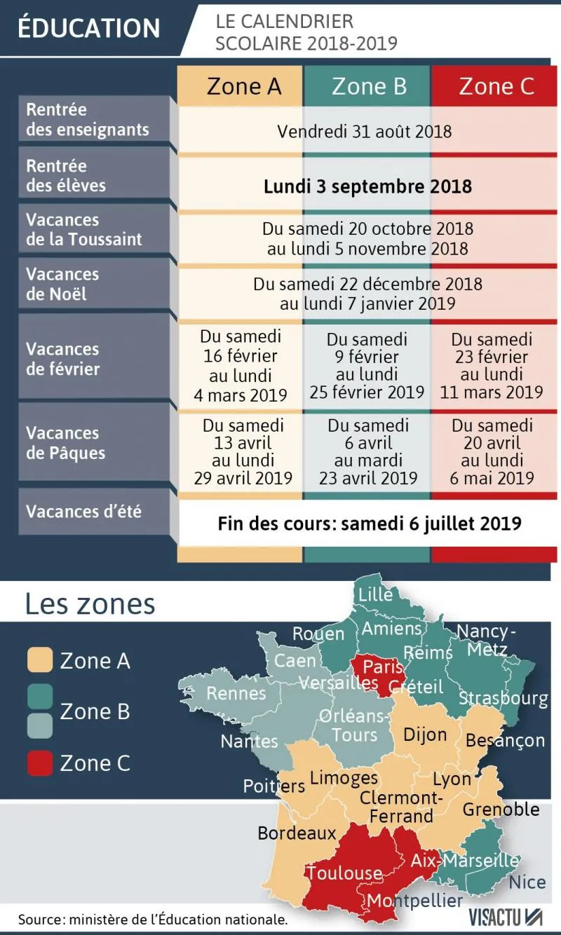 Le calendrier des vacances scolaires 2018-2019 est connu